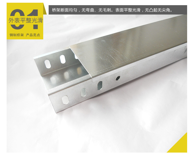 新型組合橋架結(jié)構(gòu)簡單,橋架可組合或拆分,極大的方便了橋架的運輸,降低了運輸成本;通過調(diào)節(jié)下折邊連接孔與梯棍上通孔的對應連接位置,即可調(diào)節(jié)橋架內(nèi)部的空間;由于梯棍的截面是圓角矩形,敷設(shè)在橋架內(nèi)的電纜受到擠壓時,使電纜受到梯棍拐角的摩擦較小。