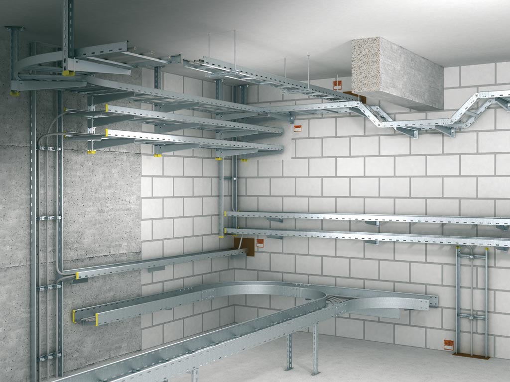 電纜橋架是由托盤的直線段、彎通、組件以及托臂(臂式支架)、吊架等構(gòu)成具有密接支承電纜的剛性結(jié)構(gòu)系統(tǒng)之全稱。
